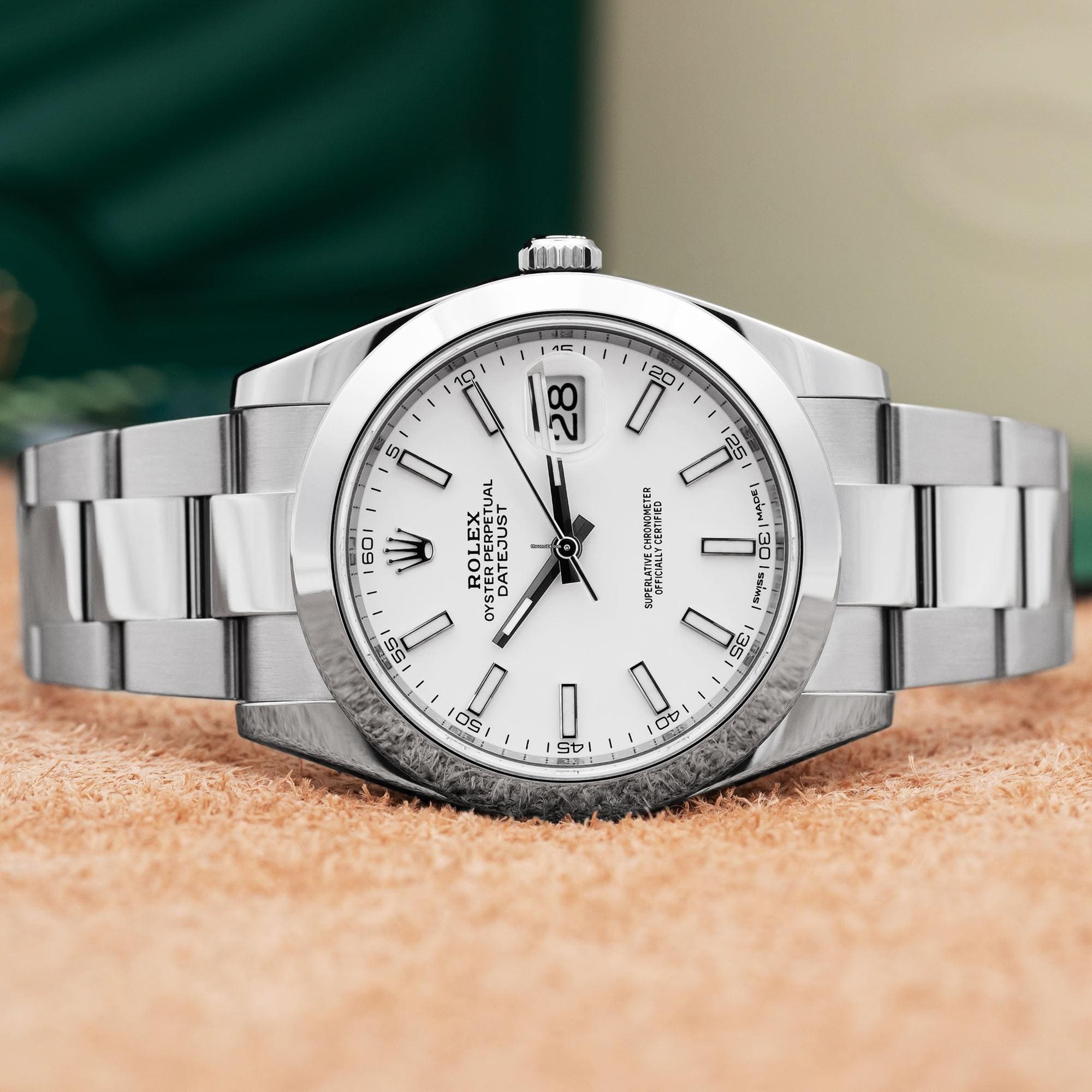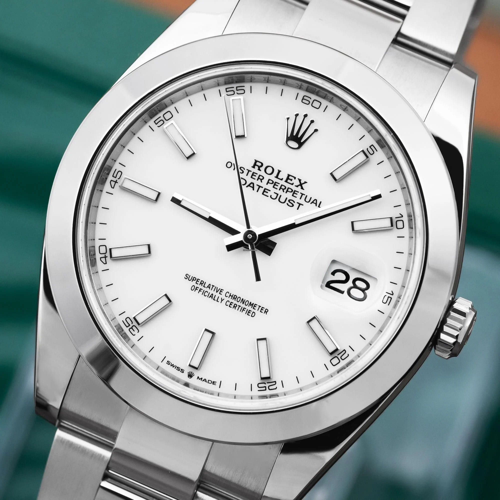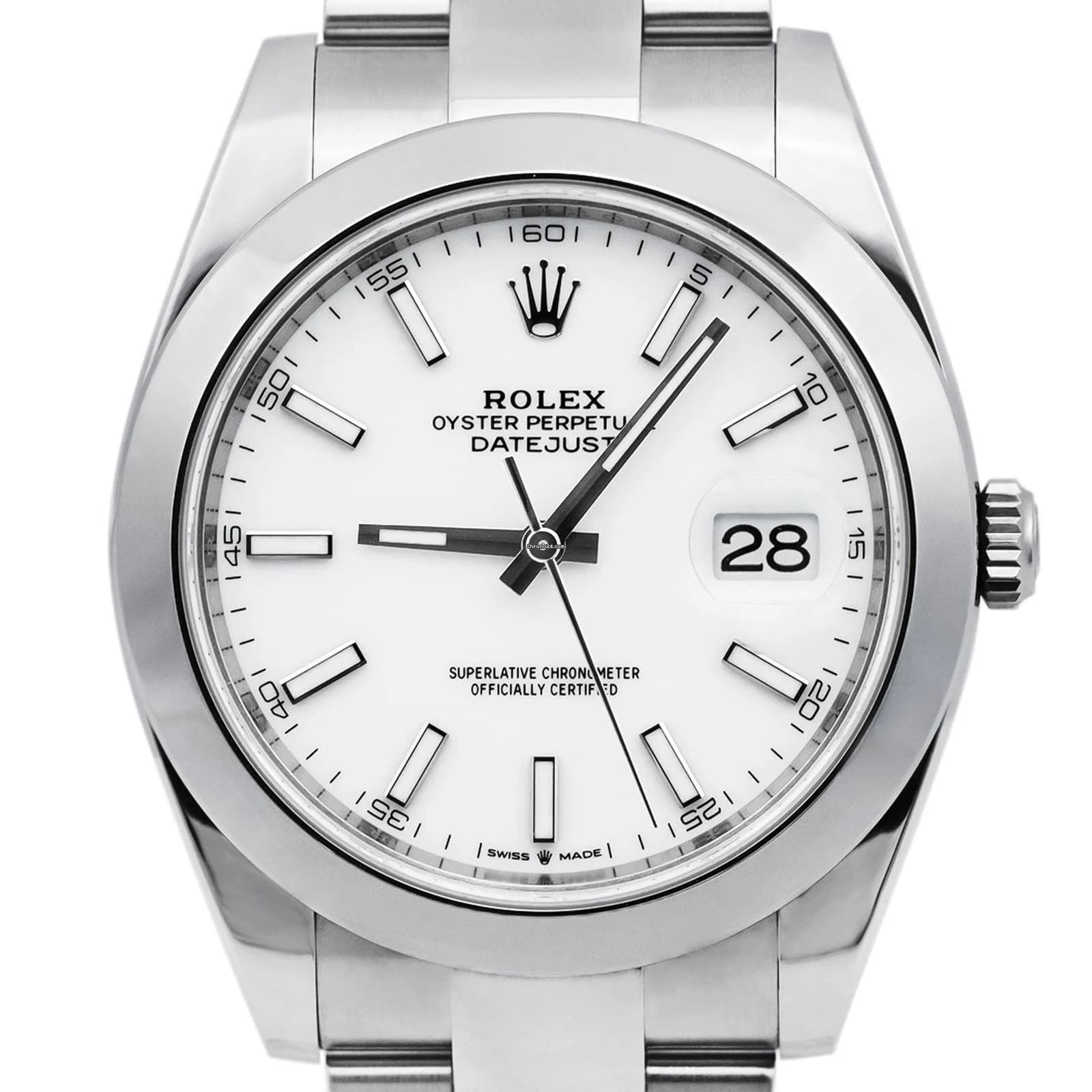 Elegant Rolex Datejust 41mm in stainless steel with white gold bezel and Jubilee bracelet.